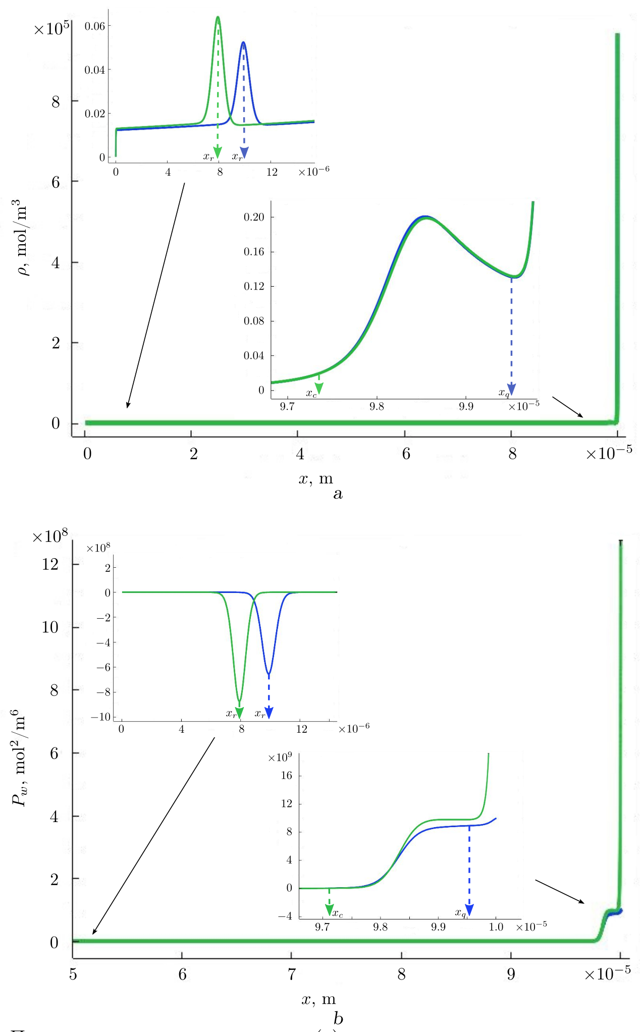 - явно выраженная зависимость ионных потоков от модифицированной константы равновесия $K_w(\rho)$, проявляющаяся в увеличении их абсолютных значений при $b=10^{-6}$ по сравнению с базовым случаем ($b=0$).