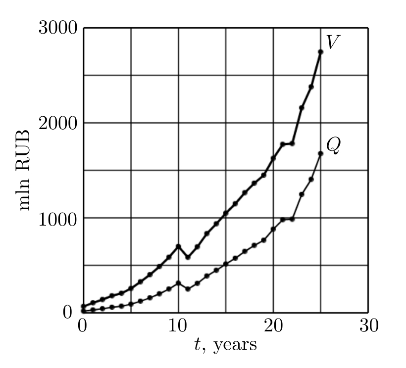 Year$t$$ Q $, mln RUBYear$t$$ Q $, mln RUBYear$t$$ Q $, mln RUB