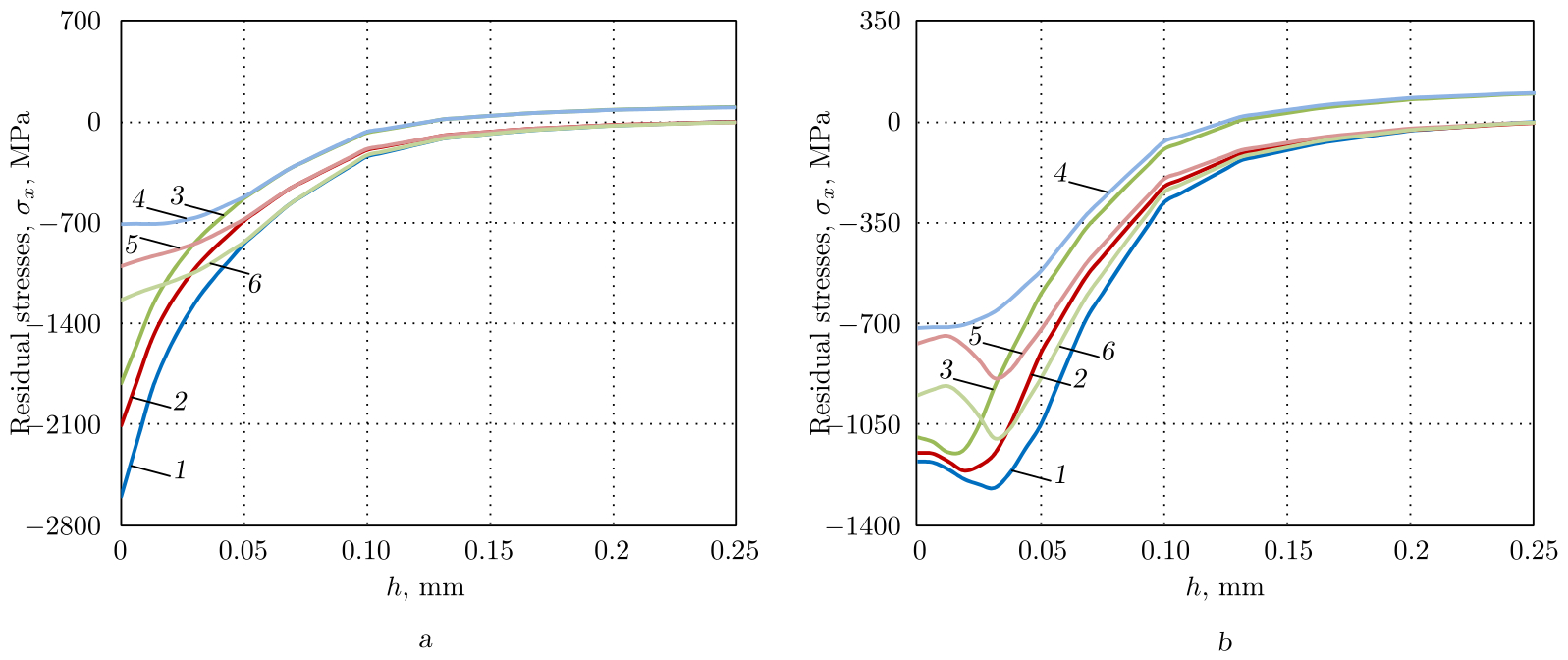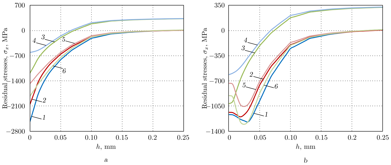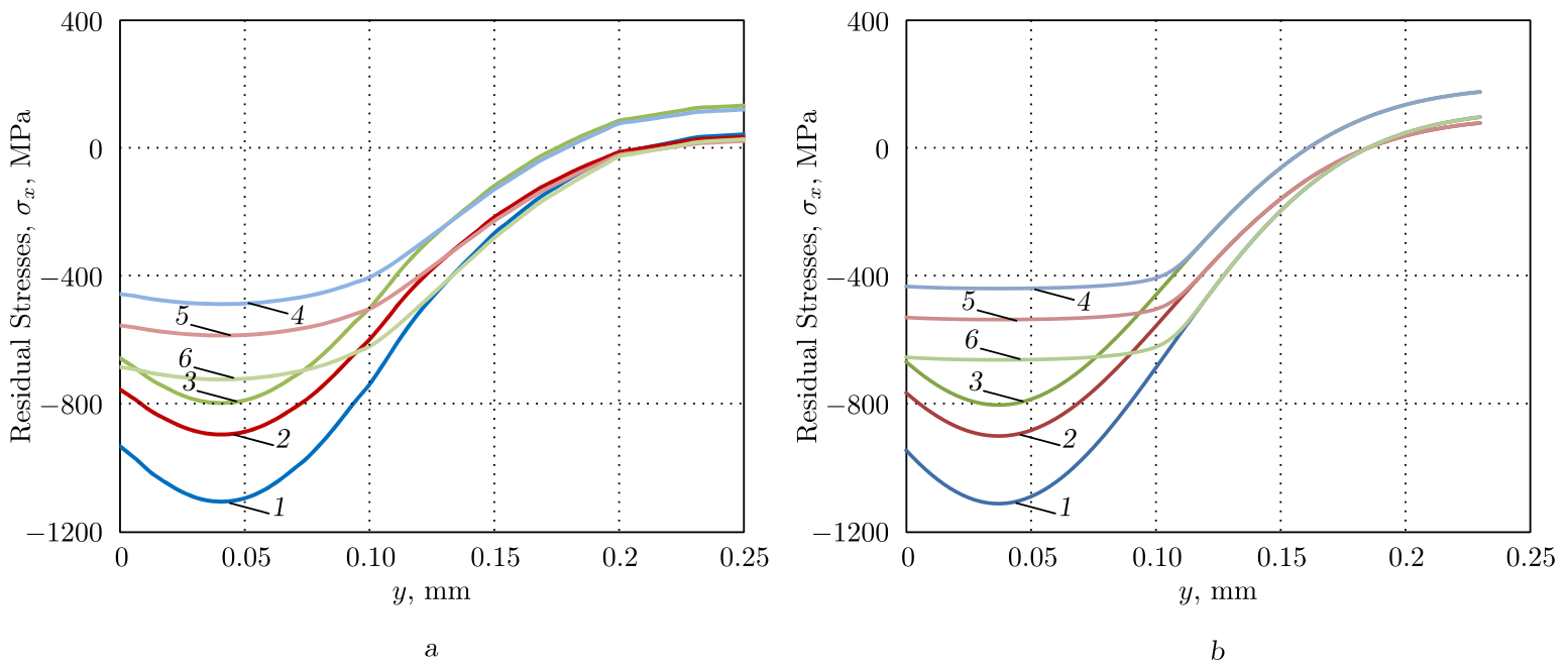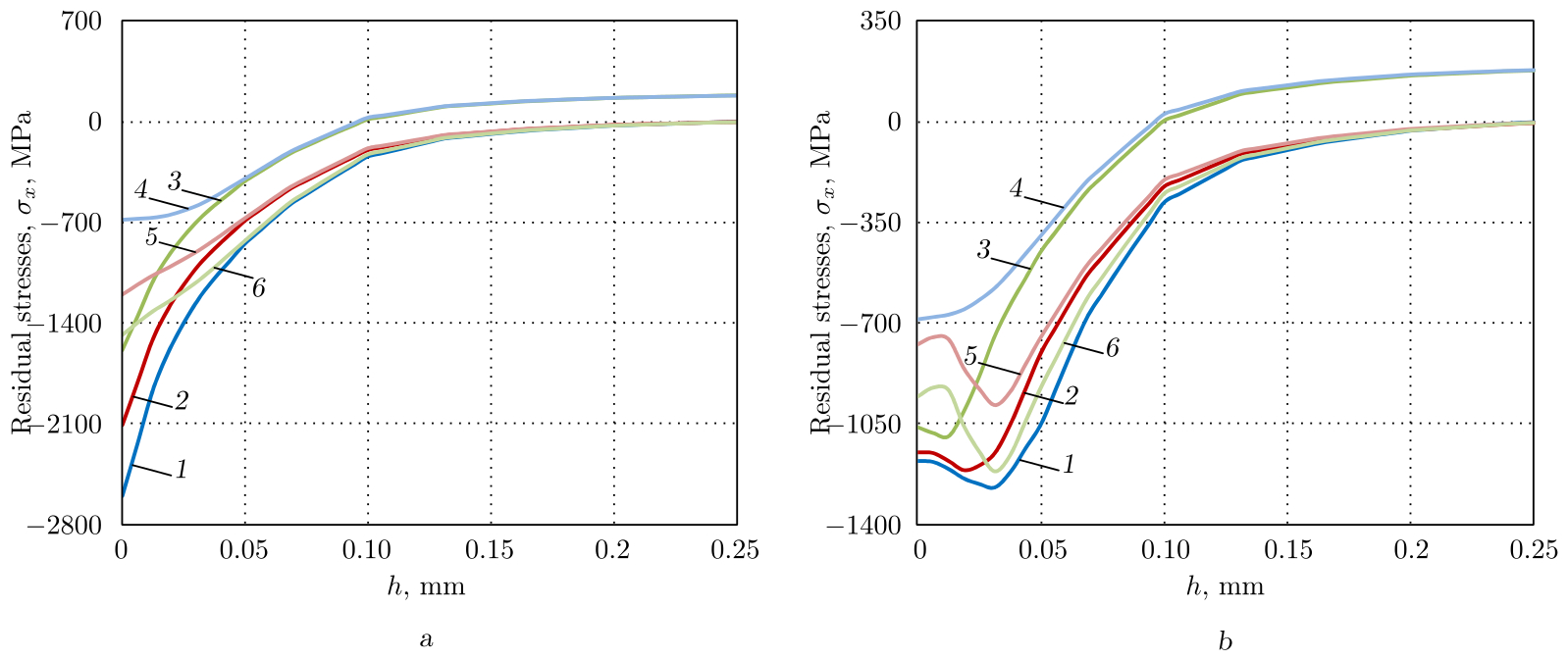 С позиции механики упрочнения улучшение показателей надежности деталей достигается за счет формирования тонкого приповерхностного слоя остаточных напряжений (ОН) сжатия, которые компенсируют эксплуатационные растягивающие напряжения. Например, в зависимости от используемого метода ППД толщина упрочненного слоя может варьироваться от 100 до 300 мкм [2, 4, 6, 14–17] при дробеструйной обработке и достигать 1 мм и более при обкатке роликом [15, 17].