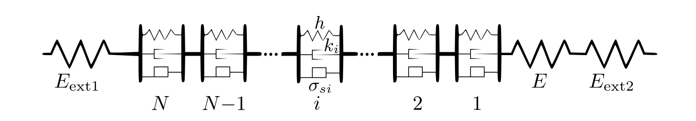 \sigma=h\varepsilon_i+F(\dot{\varepsilon_i})+K\bigl((\varepsilon_i-\varepsilon_{i-1})+(\varepsilon_i-\varepsilon_{i+1})\bigr),