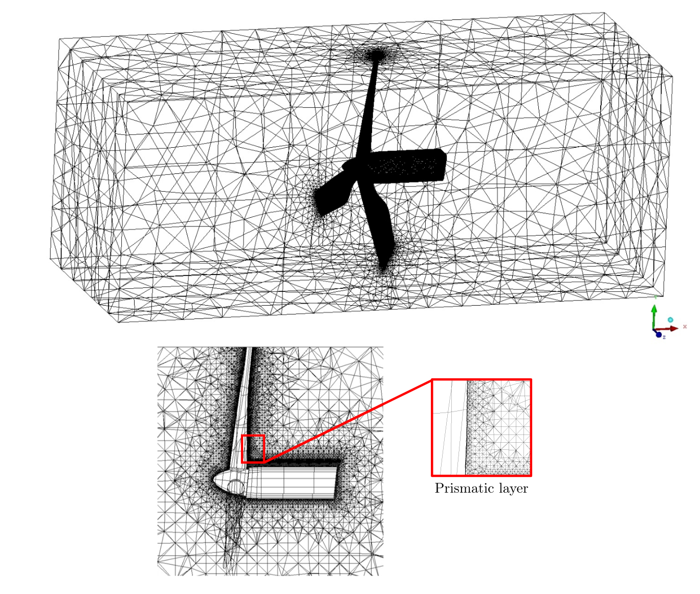 Рисунок 2. Сеточное разбиение (общий вид и в разрезе)
