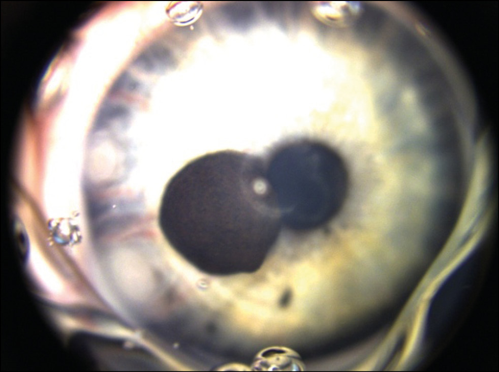 Рис. 2. Киста пигментного эпителия зрачкового края радужки.