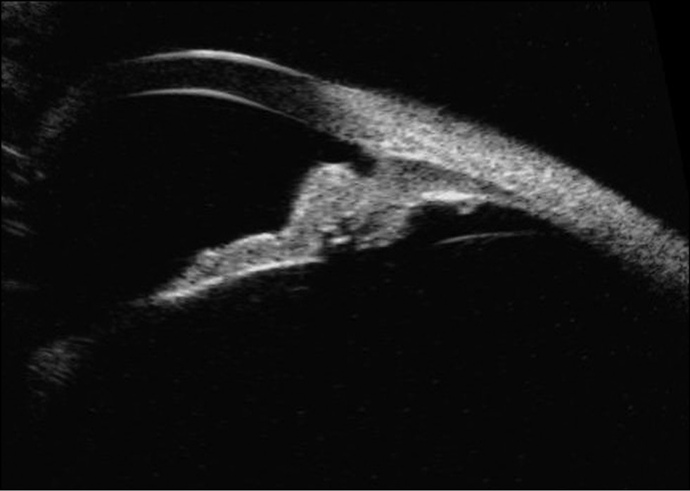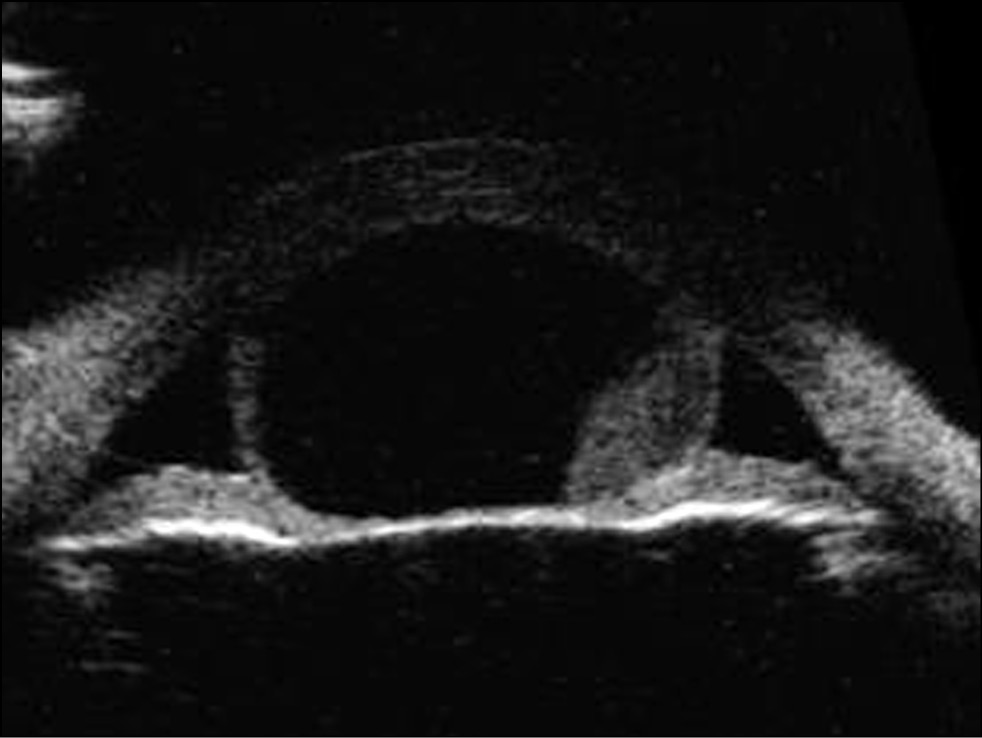 Рис. 10. Стромальная киста радужки. Ультразвуковая биомикроскопия радужки OD.