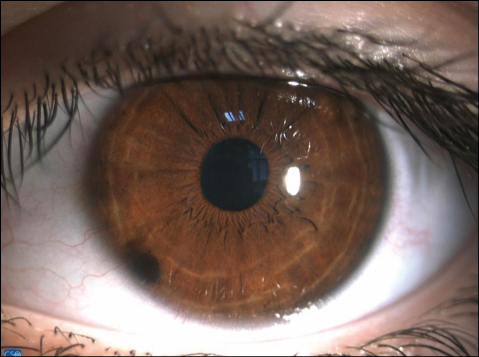 В работе Al-Kharashi и соавт. [16] представлено наблюдение меланоцитомы радужки у ребёнка 3 лет. При осмотре было обнаружено большое однородное образование в нижних квадрантах радужки со вторичным локализованным отёком роговицы. Поражение не распространялось на цилиарное тело, а обследование глазного дна не выявило поражений в заднем сегменте, включая диск зрительного нерва. Пациенту проведена секторальная иридоциклэктомия и эксцизионная биопсия поражения радужки. Морфологическое исследование подтвердило диагноз меланоцитомы радужки [16]. В нашей работе у одного ребёнка 4 лет подтверждена меланоцитома радужки, которая клинически выглядела как пигментное новообразование радужки в области зрачкового края с выраженными приводящими сосудами, отмечено распыление пигмента по всей поверхности радужки и УПК. Ребёнку проведена иридэктомия и верифицирован гистологический диагноз.