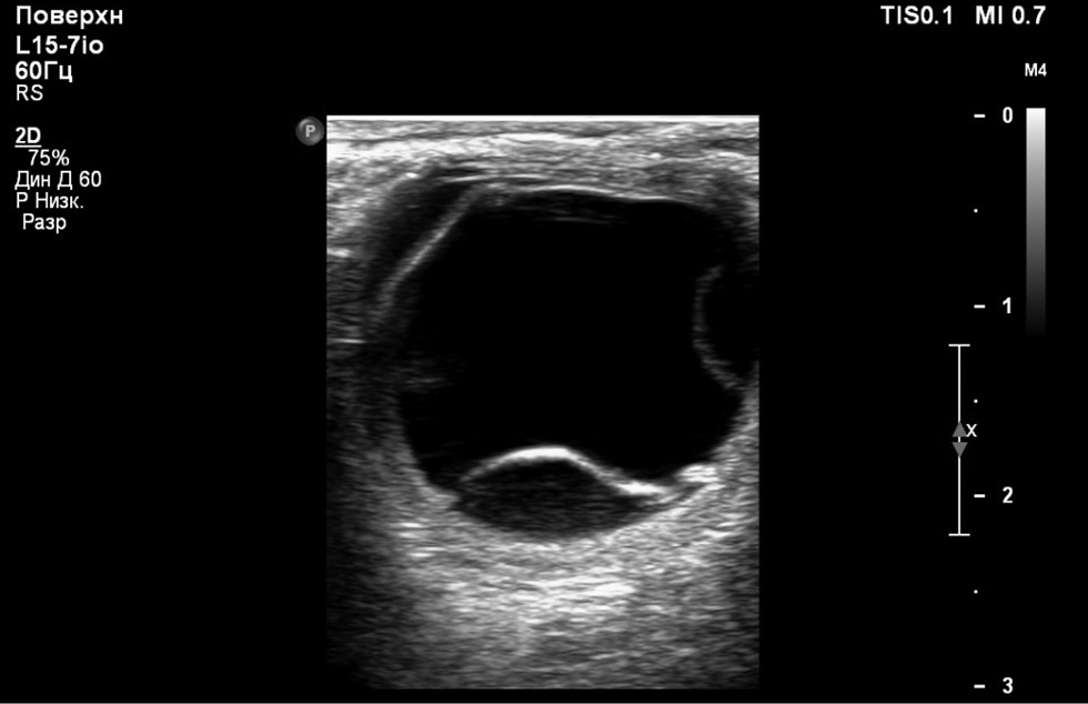 Рис. 3. B-сканирование при поступлении больного в клинику.