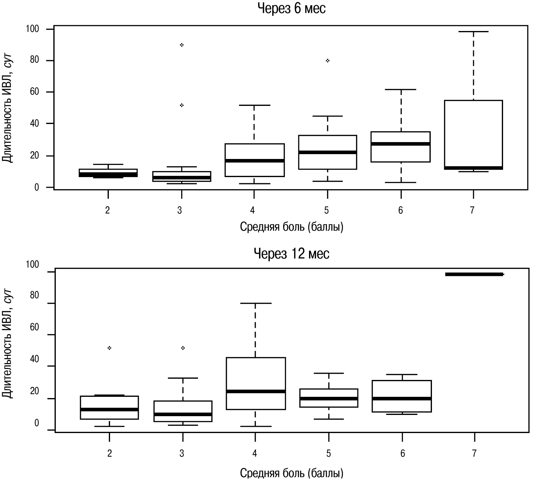 Значительными факторами риска хронической боли были длительность ИВЛ и длительность пребывания в ОИТ. В исследовании Timmers et al. (2011) [31] продолжительность пребывания в отделении интенсивной терапии и дни ИВЛ не являлись значимыми факторами риска хронической боли после выписки из отделения интенсивной терапии, что возможно объясняется разным составом патологий пациентов.