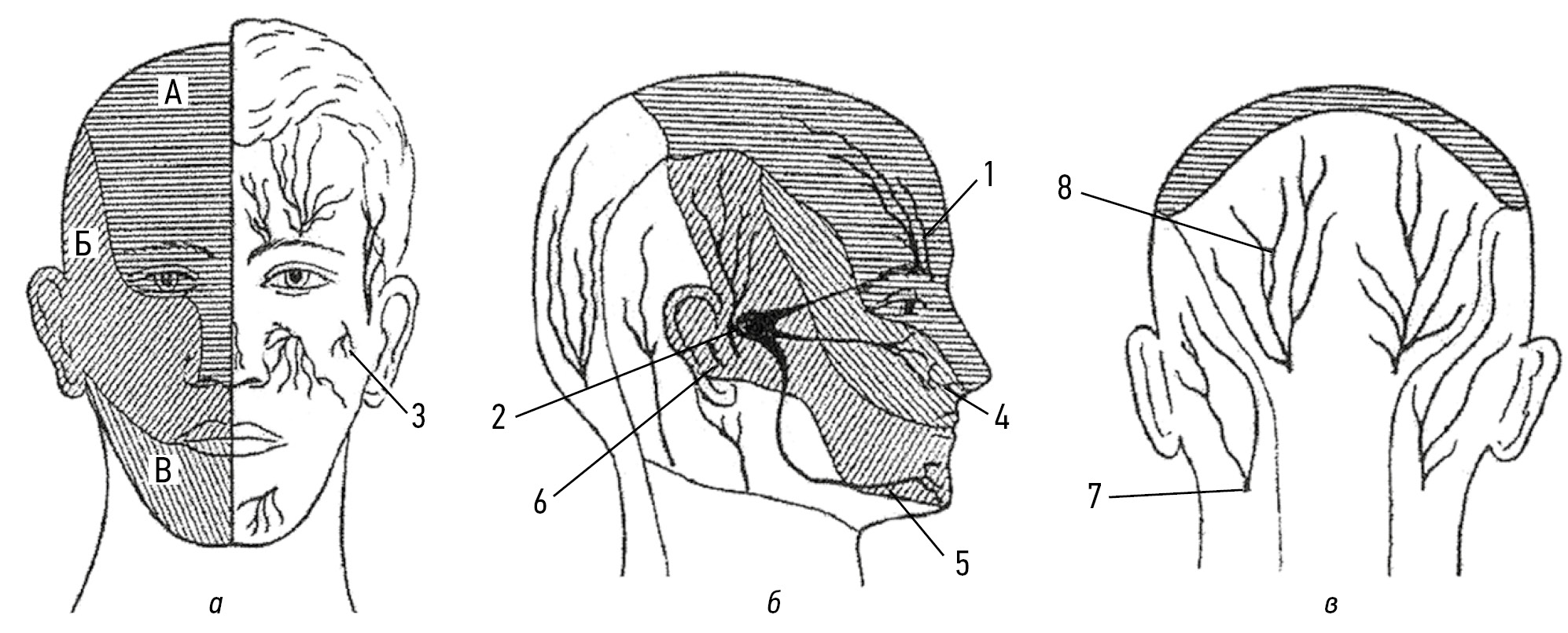 Рис. 1. Схема иннервации скальпа (по Салалыкину [6])