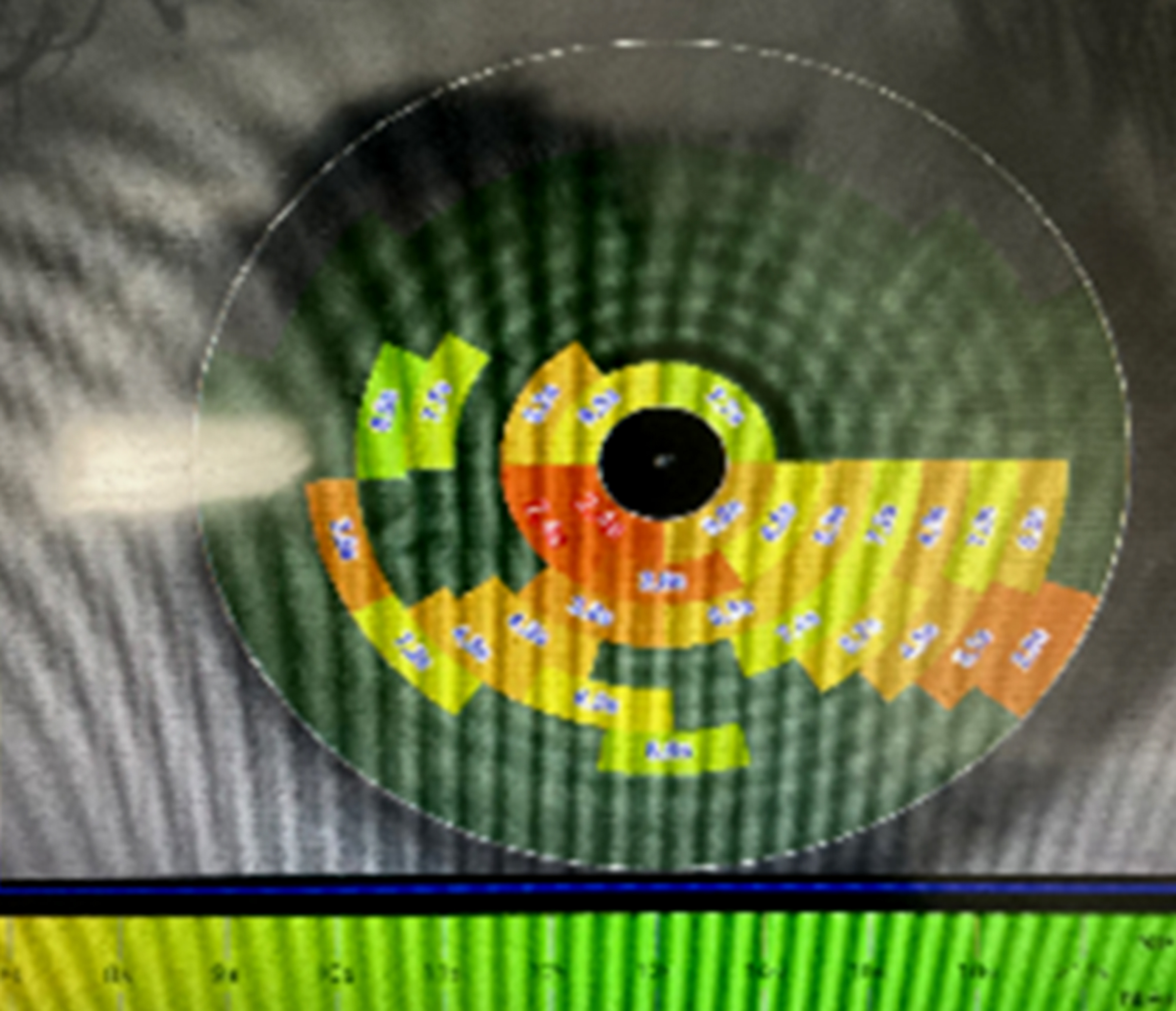 Результаты комплексной оценки состояния глазной поверхности с использованием диагностического модуля корнеотопографа Sirius Schwind (Германия), представленные на рис. 3, показали номальные значения мейбографии в течение всего срока наблюдения.