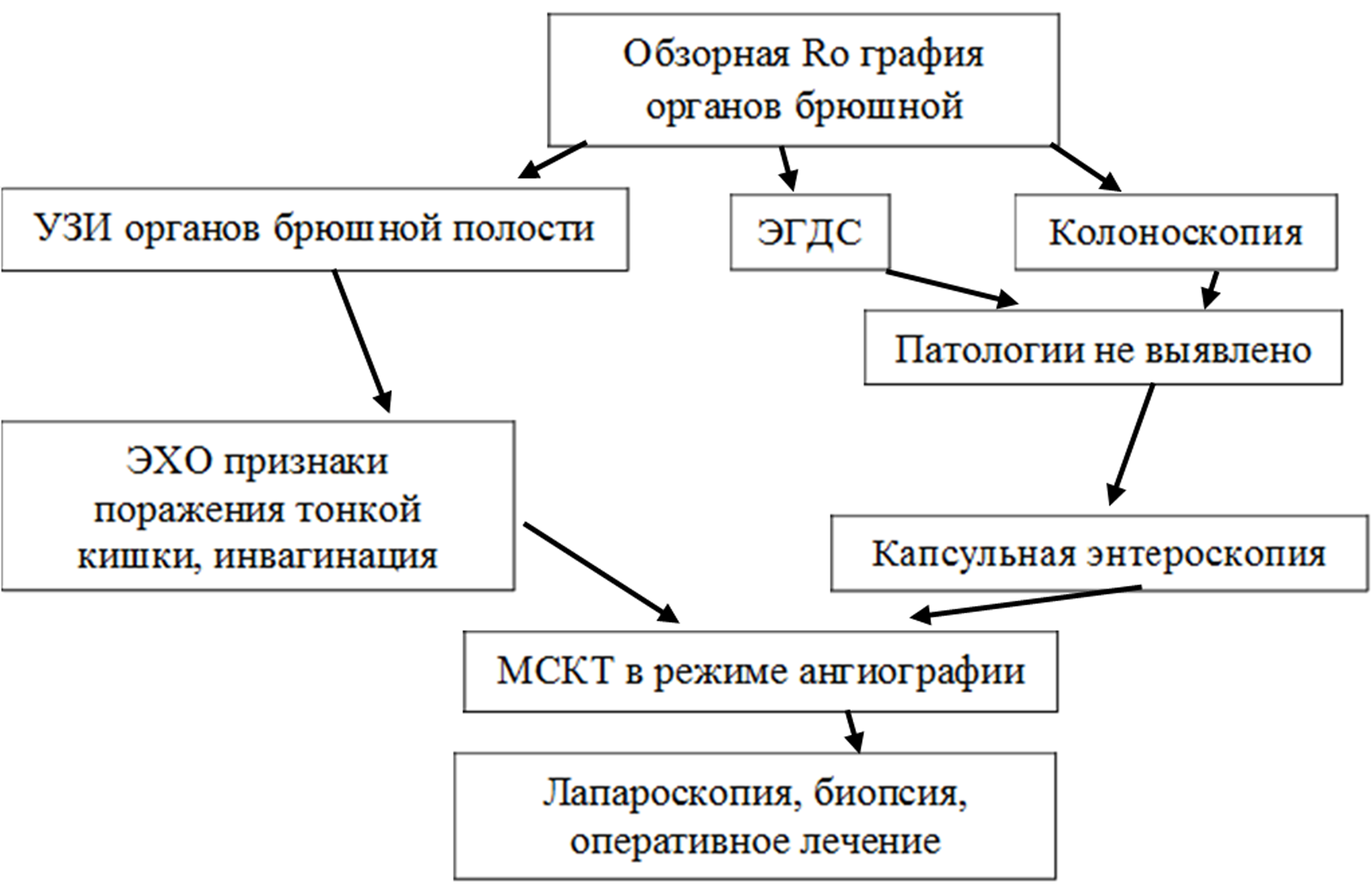 Рис. 1. Алгоритм диагностики осложненных опухолей тонкой кишки