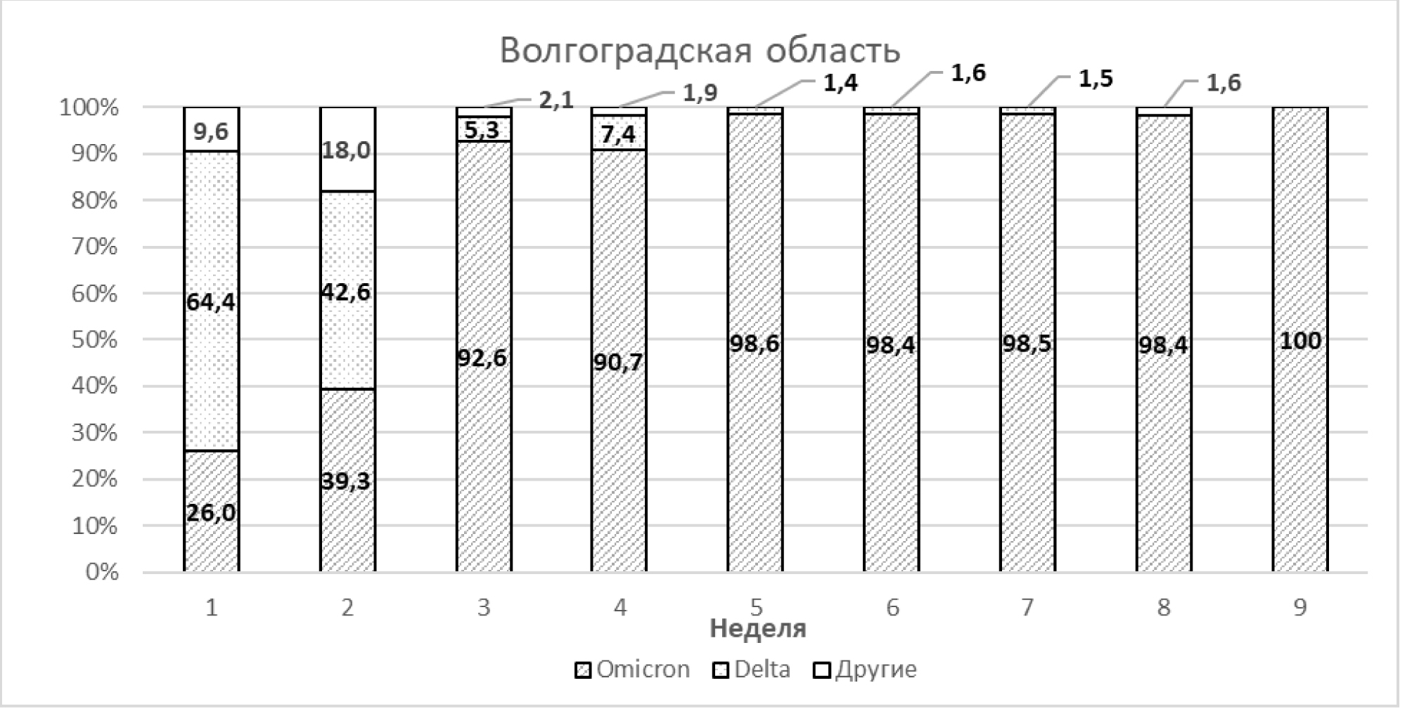 Анализ проявлений эпидемического процесса, вызванного геновариантом «омикрон» SARS-CoV-2, в Волгоградской области.