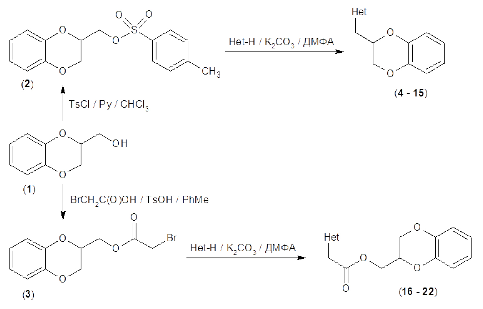 Рис. Синтез новых гетероциклических производных (бензодиоксан-2-ил)метанола