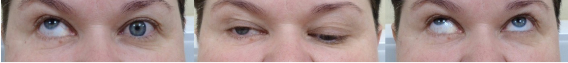 Безусловно, тяжесть повреждения (полный разрыв мышцы) и длительность заболевания (более двух недель с момента получения травмы) не позволили в полном объеме восстановить функцию ЭОМ. Однако наличие диплопии во второстепенном направлении взора – при взгляде вверх – незначительно влияет на качество жизни. Таким образом, срочное проведение хирургического лечения позволило получить хороший косметический и функциональный результат.