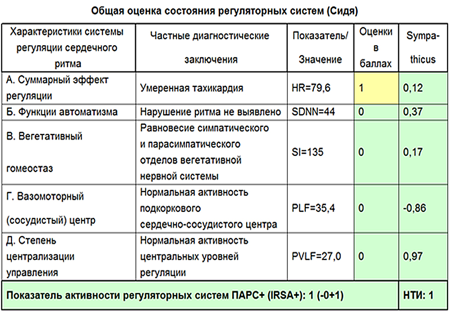 Исследование проведено программно-аппаратным комплексом (ПАК) «Варикард 2.51», который применяли для анализа показателей вариабельности сердечного ритма (ВСР) на основе регистрации ЭКГ. Метод ВКР и его IT программное обеспечение позволяет вычислять до 40 различных параметров функционального состояния организма и регуляторного влияния вегетативной нервной системы (ВНС) и центральной нервной системы (ЦНС) на сердечно-сосудистую стистему (ССС), определяющих показатели адаптации, с помощью которых оценивается уровень здоровья занимающихся. Метод ВСР рекомендуется как российскими, так и европейскими стандартами в области кардиологических исследований [4, 8].