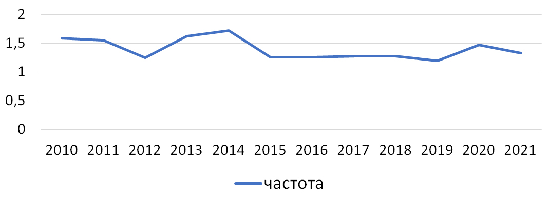 Рис. 1. Динамика частоты ВРГН в Волгограде и области за 2010–2021 гг.