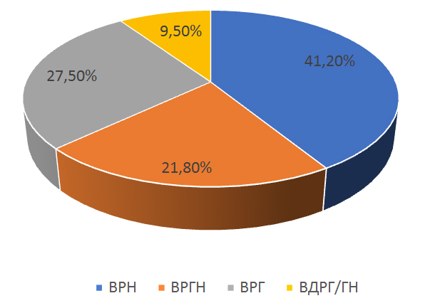 Частота рождения детей с ВРГН в Волгограде и области за 2010–2021 гг., по данным нашего исследования, составляет 1 : 767 детей.