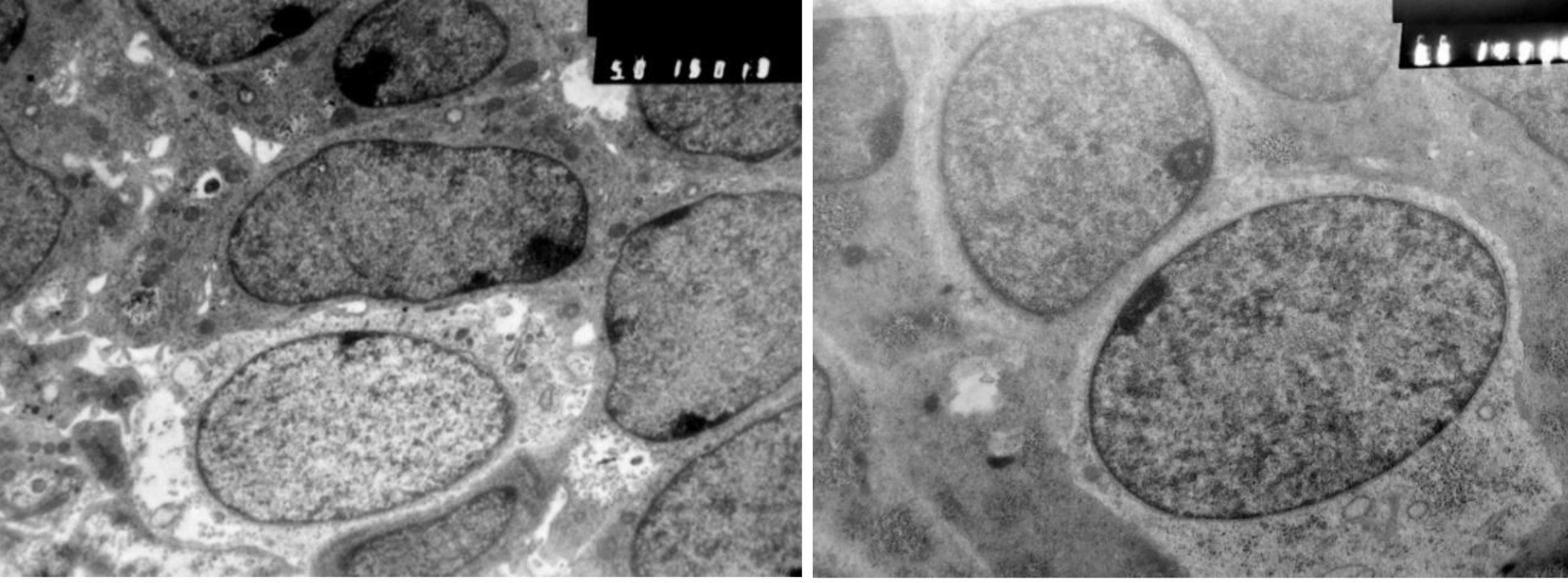 Площадь ядер клеток эпителия, мкм² | 27,5 ± 0,5 | 26,3 ± 0,4 | 23,2 ± 0,3 |