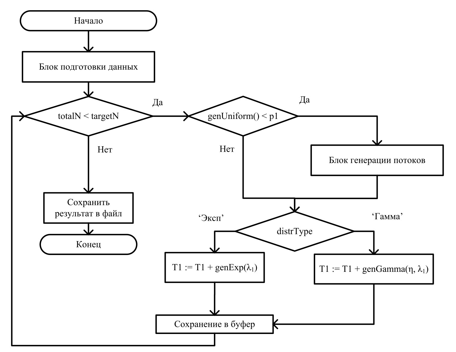 Рисунок 2. Блок-схема алгоритмов генерации потоков заявок