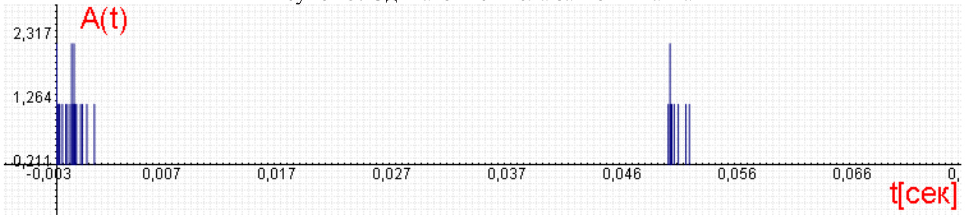 В первом случае, когда все заявки пачки сосредоточены во времени в одной точке, при выводе происходит многократное повторение одного и того же значения .