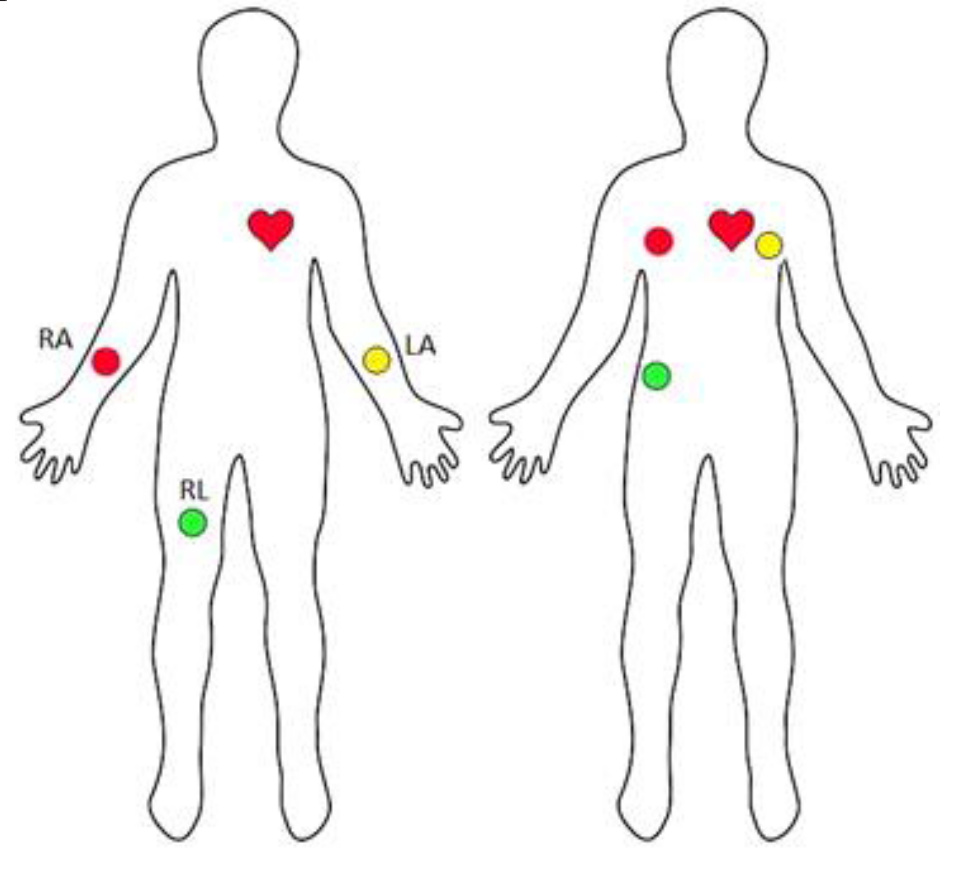 Датчик ЭКГ на основе микросхемы AD8232 предназначен для получения, усиления и фильтрации сигналов электрической активности сердца. Микросхема содержит фильтры высоких частот и операционный усилитель, что позволяет удалять помехи и шумы из сигнала. Датчик необходимо подключить к осциллографу. Электроды на теле пациента улавливают изменения потенциалов, вызванные деполяризацией сердечной мышцы. На основе AD8232 могут быть созданы портативные устройства для мониторинга здоровья сердца, такие как ЭКГ и кардиомониторы. Основная схема снятия (рисунок 3) – для записи отведений электроды накладывают на правую руку (RA), левую руку (LA) и левую ногу (RL).