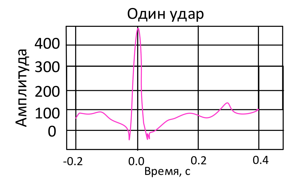 На рисунке 4 показаны чистые данные с человека. На первом графике (рисунок 4а) показано неотфильтрованный сигнал, полученный с датчика. На втором (рисунок 4б) – отфильтрованный сигнал. На третьем (рисунок 4в) показан пульс. Четвертый график (рисунок 4г) показывает импульс сокращения сердца.