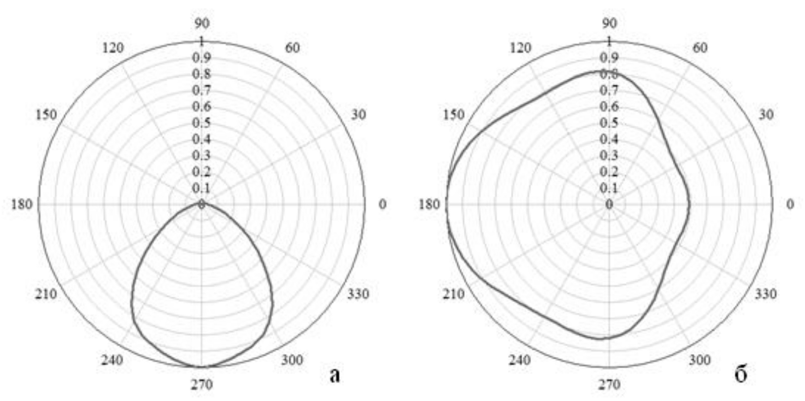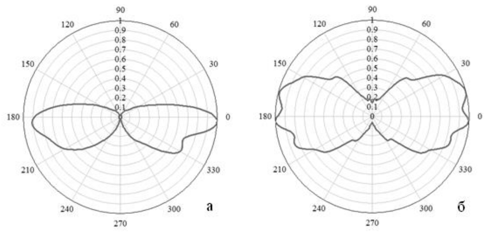 Характеристики направленности низкопрофильной антенны, установленной на БПЛА, на частоте 2,4 ГГц приведены на рисунке 6.