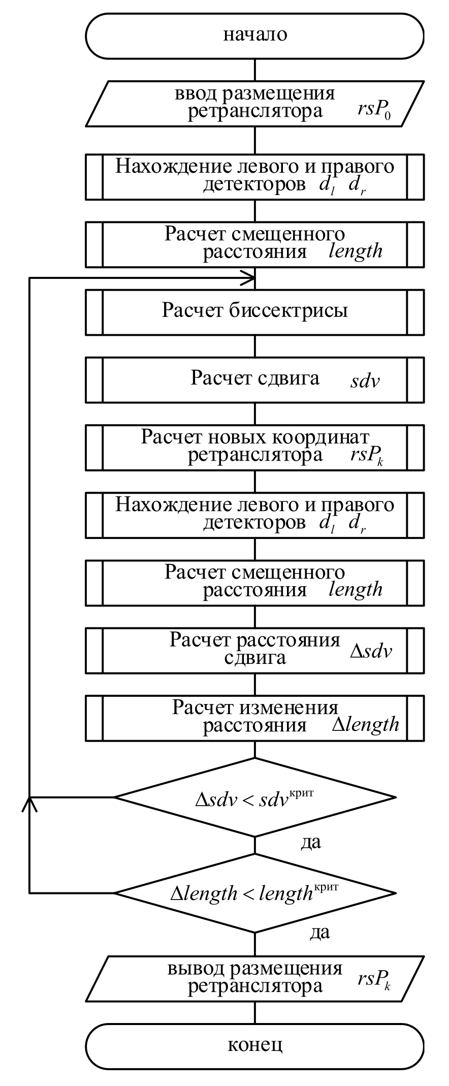 Рисунок 4. Блок-схема алгоритма расчета мест размещения ретрансляторов