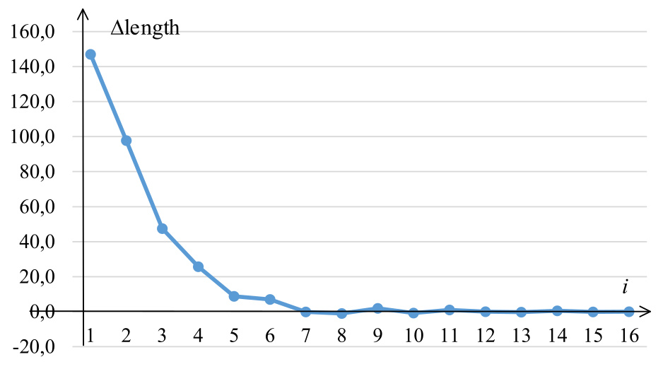 Рисунок 10. Изменение величины смещенного расстояния от итерации алгоритма