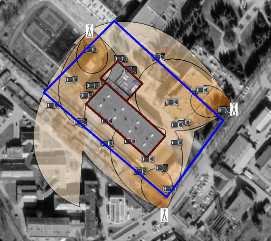 При проведении массовых мероприятий с большим количеством людей на различных объектах, слабо оборудованных, либо совсем не оборудованных стационарными техническими средствами обеспечения безопасности и соблюдения правопорядка (городские площади, парки, стадионы и др.), возникает необходимость в развертывании временных технических систем безопасности. Для этих целей широко используются быстроразвертываемые детекторы обнаружения опасных событий, позволяющие: осуществлять наблюдение за транспортными потоками и посетителями; обнаруживать возгорания, драки, агрессивное поведение, опасные предметы, оставленные без присмотра, изменения химического и радиационного фона, беспилотные летательные аппараты и др. Передача информации от таких датчиков в центр управления безопасностью осуществляется по радиоканалу, при этом скорость передачи данных от одного датчика может достигать 10-30 мбит/с. В связи с этим возникает необходимость обеспечения непрерывной надежной радиосвязи для гарантированного получения сигналов наблюдения и тревожных событий, что приводит к необходимости развертывания сети радиосвязи, включающей в свой состав значительное число ретрансляторов [1].