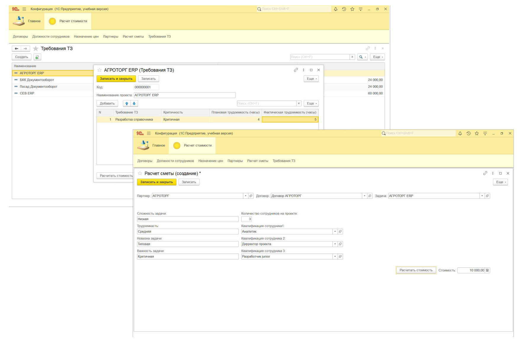 По кнопке «Рассчитать» рассчитывается примерная стоимость задачи, на основании данных, введенных на форме и правилам, внесенным в базу.