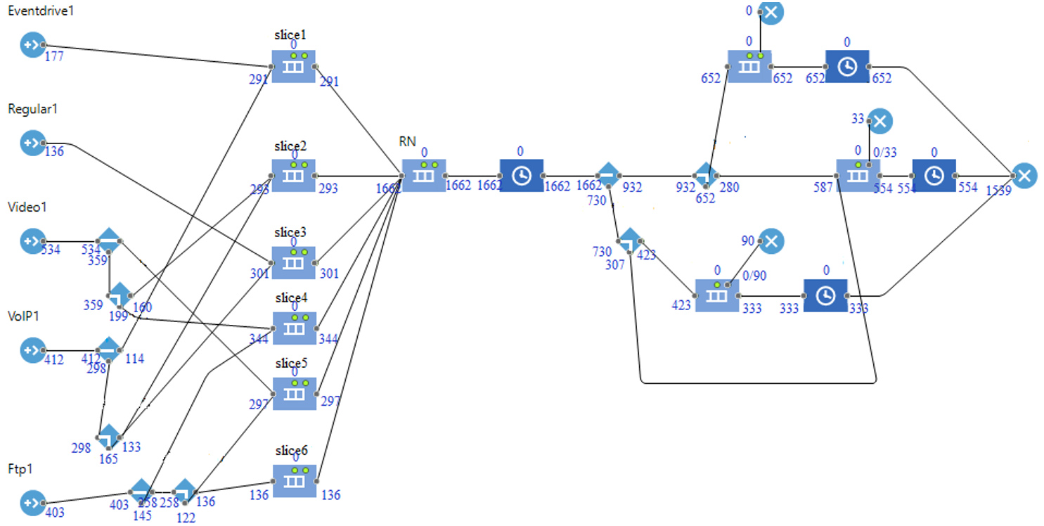 Проведем моделирование сети 5G с различными вариантами выбора дисциплин очереди, с учетом решения проблем, указанных в [10; 11].