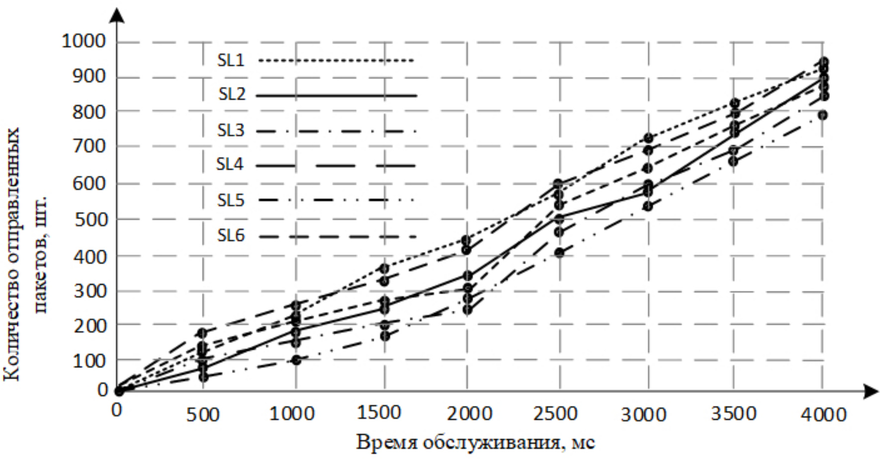 Количество потерянных пакетов, шт. | 14 | 12 | 0 | 1 | 5 | 55 |