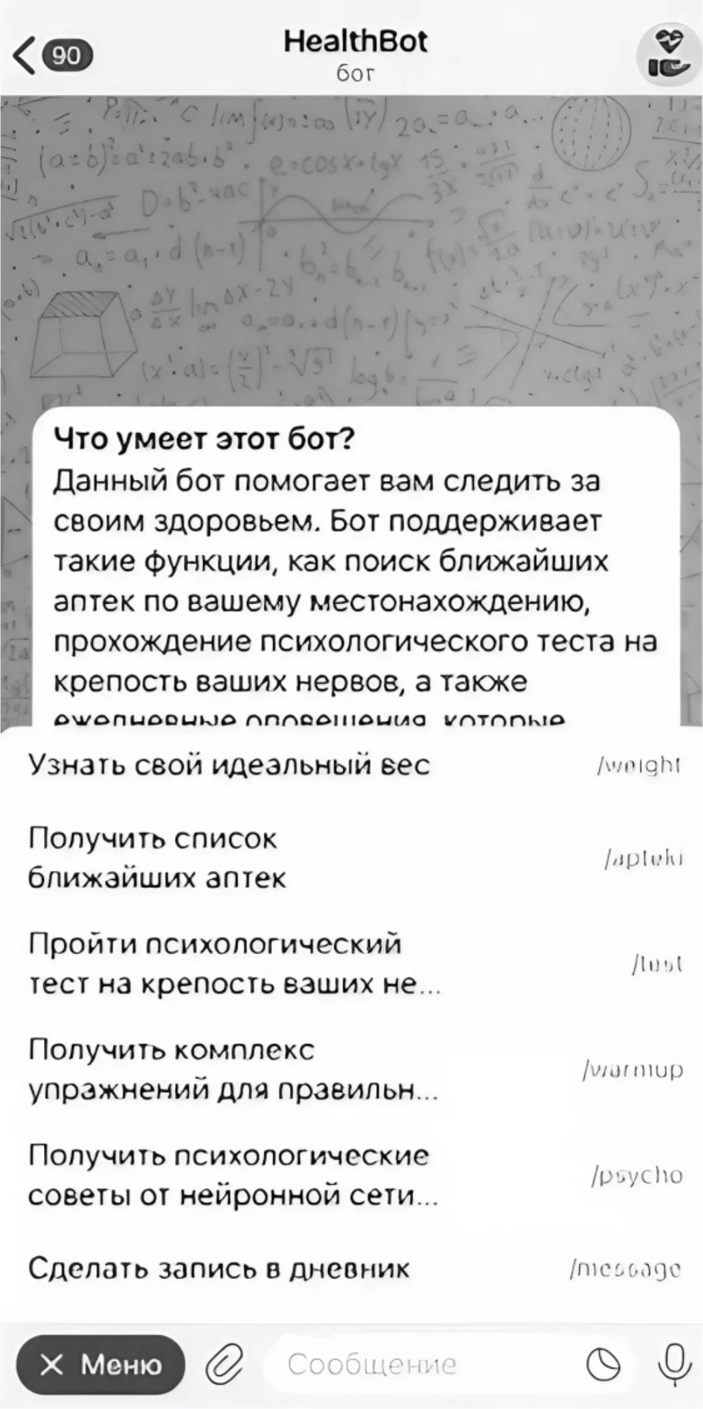 Рисунок 1. Вариант реализации интерфейса бота