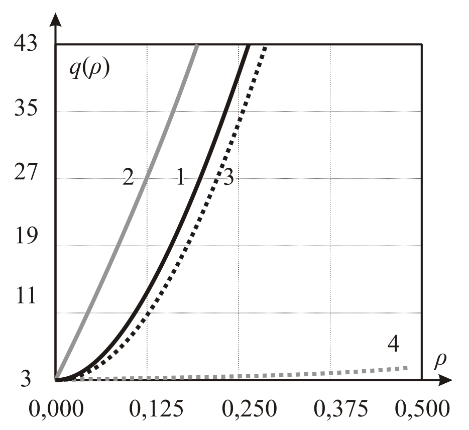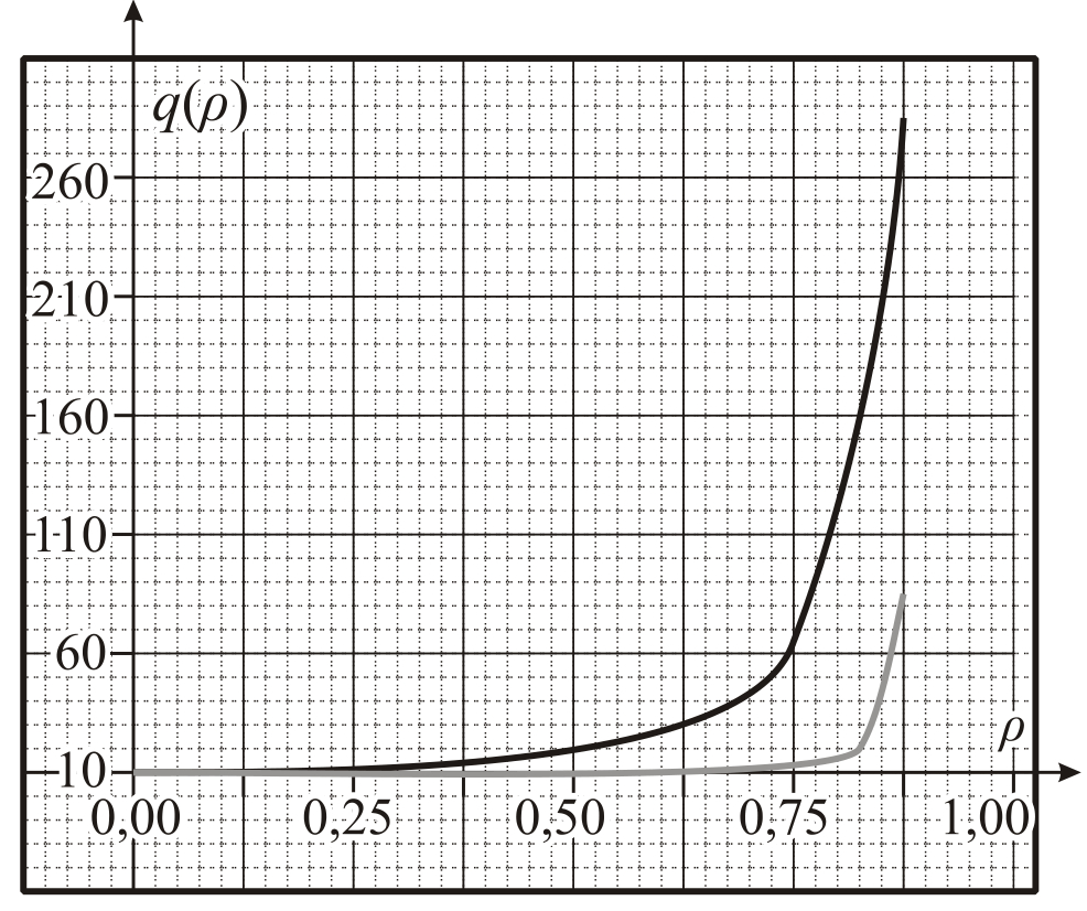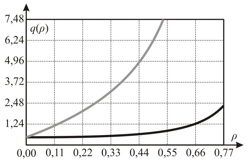С применением интервального метода анализа трафика, нами была получена зависимость средних размеров очередей для одноканальных СМО [5].