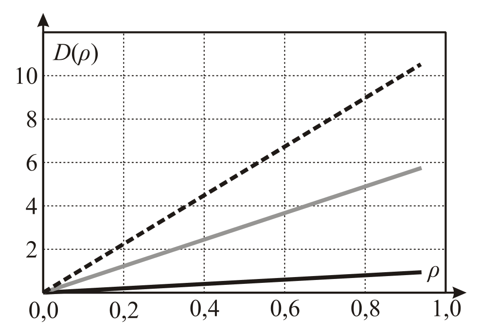 где – среднее число заявок в «пачке» – общий коэффициент загрузки; – квадрат коэффициента вариации чисел заявок в пачках. Дисперсия линейно зависит от коэффициента загрузки (рисунок 2), так же, как это бывает в обычном пуассоновском потоке, где .