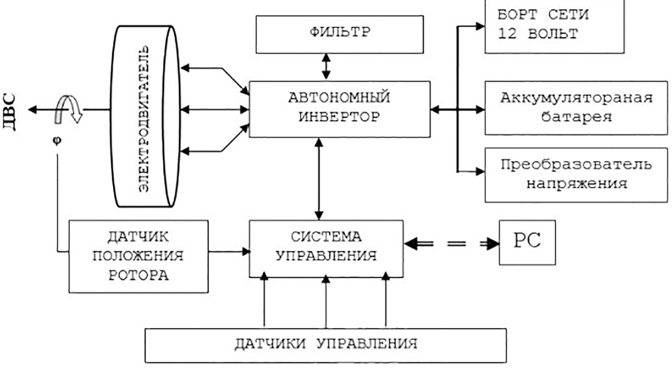 На каждом автомобиле с двигателем внутреннего сгорания (ДВС) применяются две электрические машины — электростартер и генератор, которые работают попеременно, то есть при пуске двигателя работает электростартер, а генератор принудительно отключается от аккумуляторной батареи (АБ), чтобы исключить ее дополнительный разряд. После запуска ДВС электростартер отключается и работает генератор, который обеспечивает питание потребителей электроэнергии и зарядку АБ. Таким образом, на определенных режимах работы автомобиля одна из электрических машин бездействует. Объединение двух электрических машин в одном устройстве позволит значительно уменьшить габариты и массу всей системы, повысив тем самым технико-экономические показатели автомобиля. Вопросом совмещения двух электрических машин в одном корпусе занимаются не один десяток лет, но только с развитием современной электронной базы такие разработки стали находить реальное техническое исполнение [1].