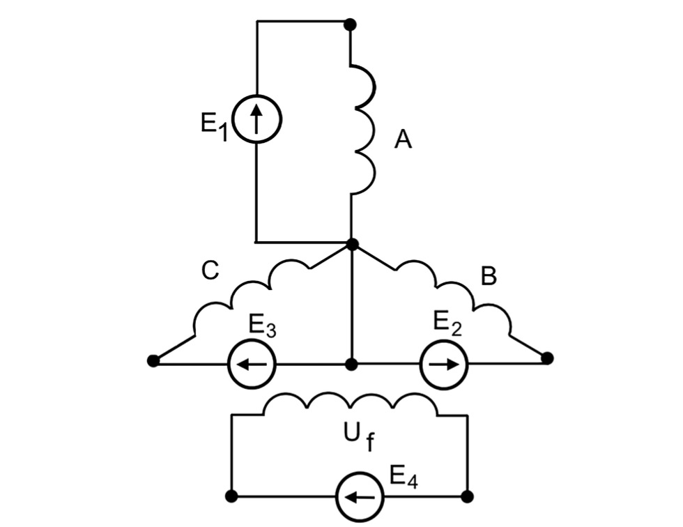 Электрическая схема замещения по постоянному току для диагностики синхронного генератора показана на рис. 5.