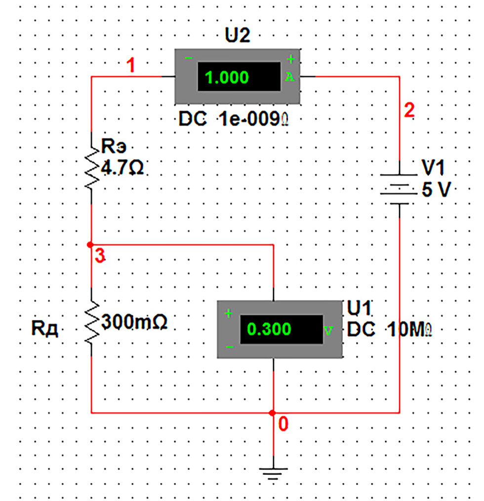 По выражению (6) можно рассчитать неизвестное сопротивление RД. Для этого достаточно знать величины и на эталонном резисторе RЭ.
