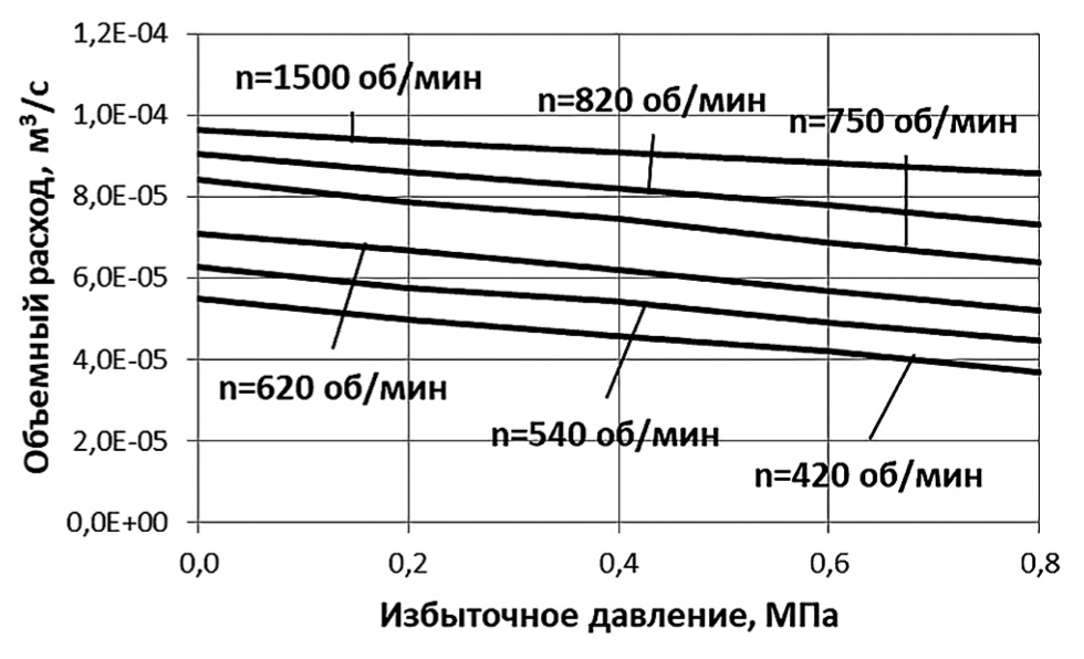 Рис. 5. Характеристика масляного насоса. / Fig. 5. Characteristic curves of the oil pump.