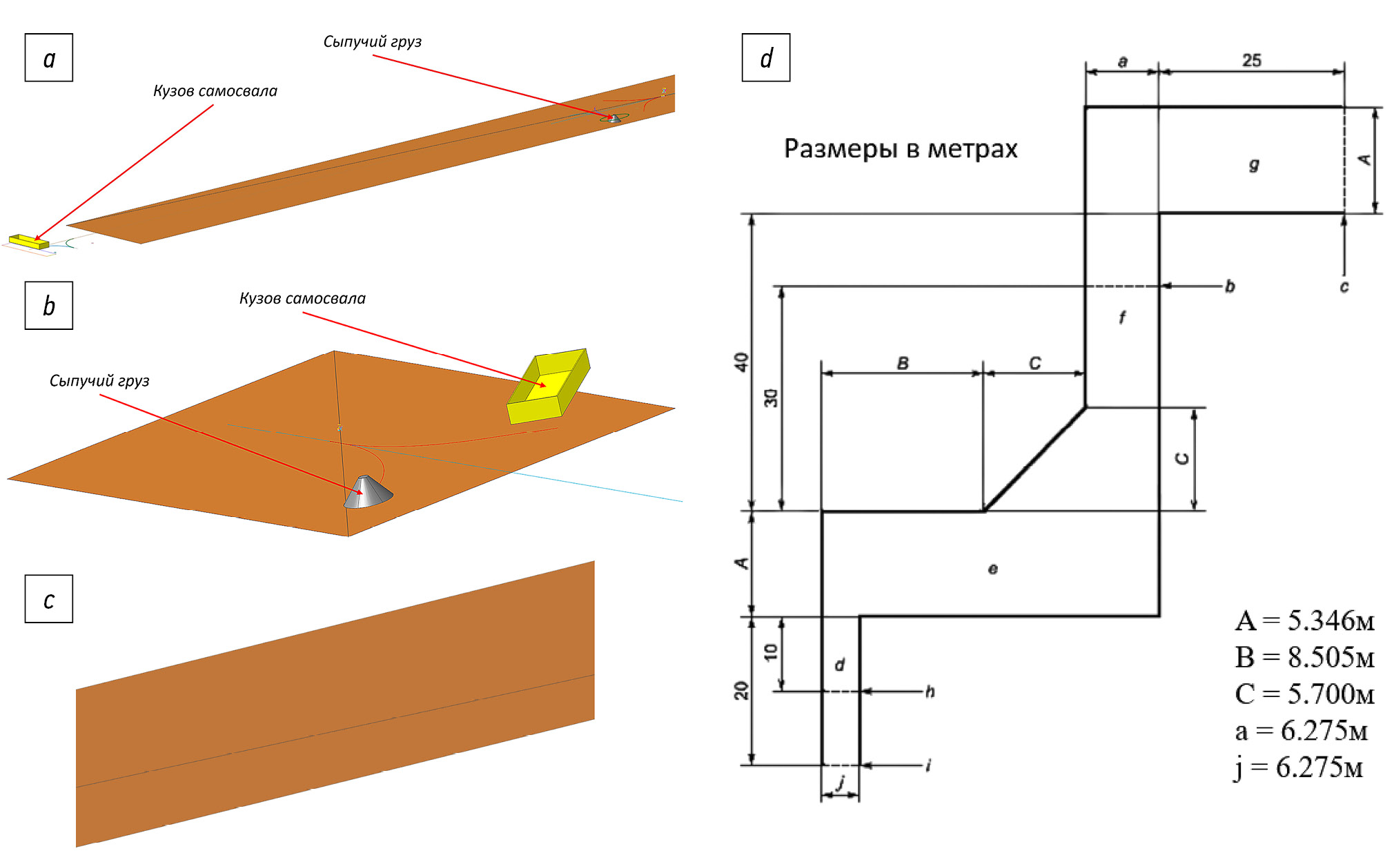 Моделирование нагрузочных режимов фронтального погрузчика производилось на различных ОП. Общий вид основных моделей ОП, использованных при моделировании, представлен на рис. 6. Коэффициент сцепления колес с ОП задавался равным 0.6, коэффициент сопротивления движению равен 0.02.