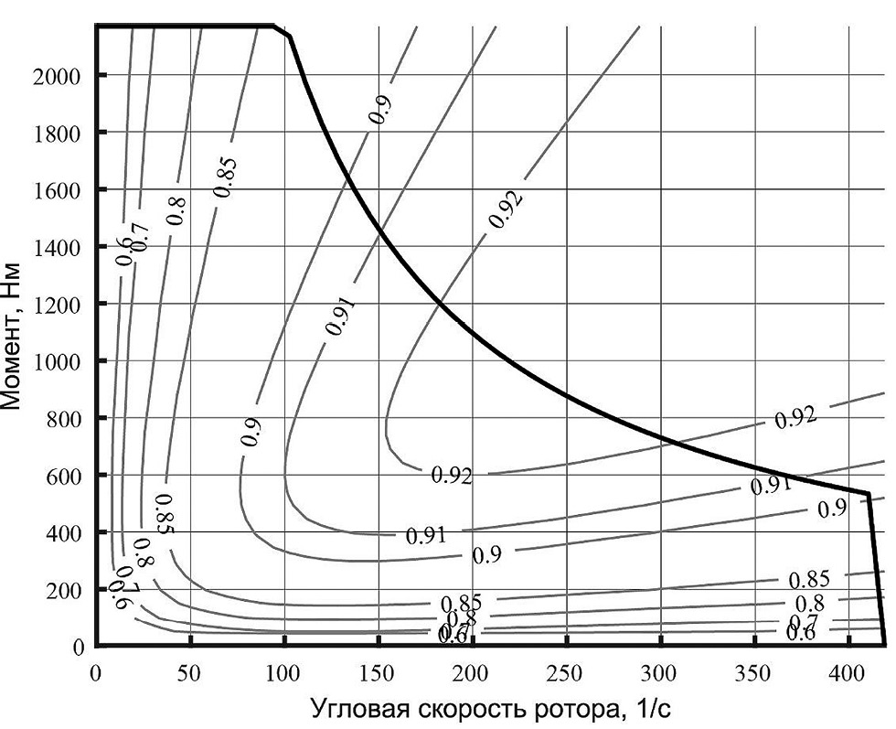 Модель электродвигателя задана в отдельном подключаемом dll файле. В качестве исходных данных в модели двигателя используются скоростные, силовые (мощностные) параметры, а также поле КПД (рис. 7).