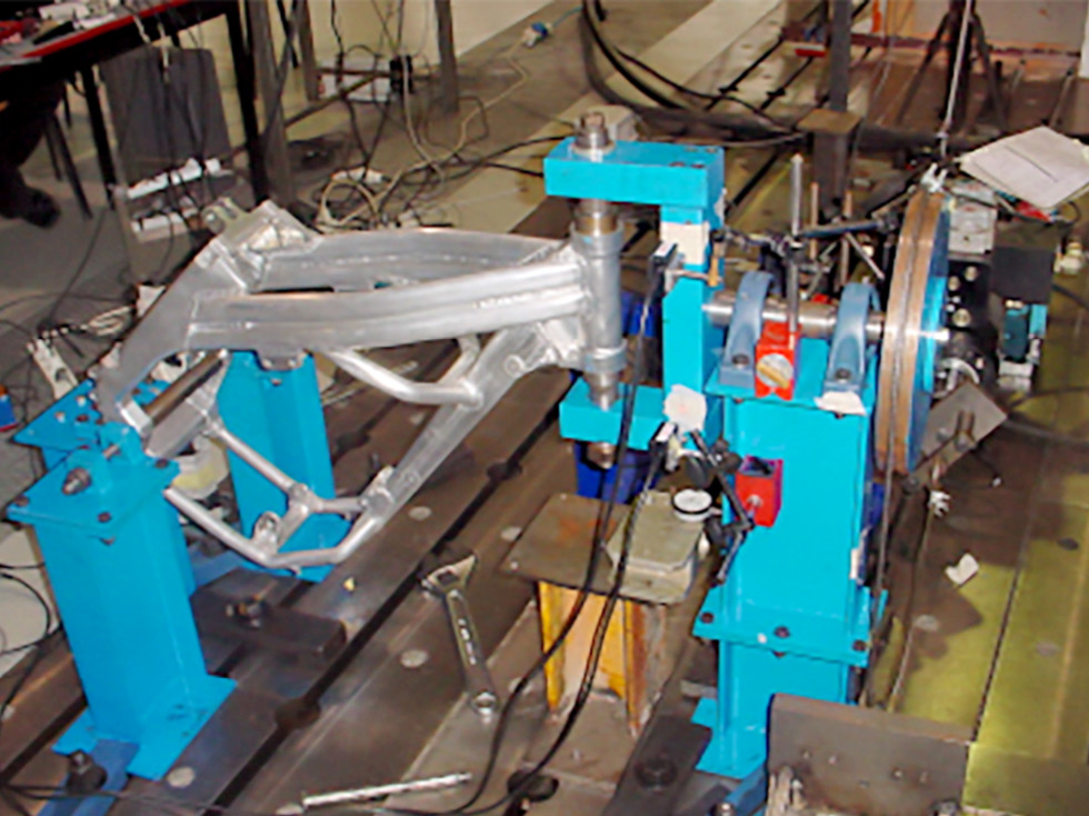 Испытания отдельных ответственных агрегатов мотоцикла в стендовых условиях, которыми являются рама, вилка передней подвески и балансирный рычаг, технически и экономически оправданы, поскольку позволяют производить оценку характеристик и осуществлять доводку конструкции на стадии проектирования, не дожидаясь полной готовности мотоцикла. К тому же полученные характеристики являются ценным материалом для подразделений, занимающихся расчетным анализом конструкций, которые могут произвести необходимые уточнения в модели. Рассмотренные компоненты могут испытываться как статическими, так и динамическими нагрузками. Статические испытания необходимы для определения действительной прочности детали, так как виртуальная модель «идеальна», в ней отсутствуют какие-либо погрешности производства. Ресурсные испытание компонентов производят с целью определения их долговечности, такие испытания зачастую проводят для всего узла в сборе, чтобы наиболее приблизить условия нагружения к тем, которые будут при дальнейшей эксплуатации мотоцикла.