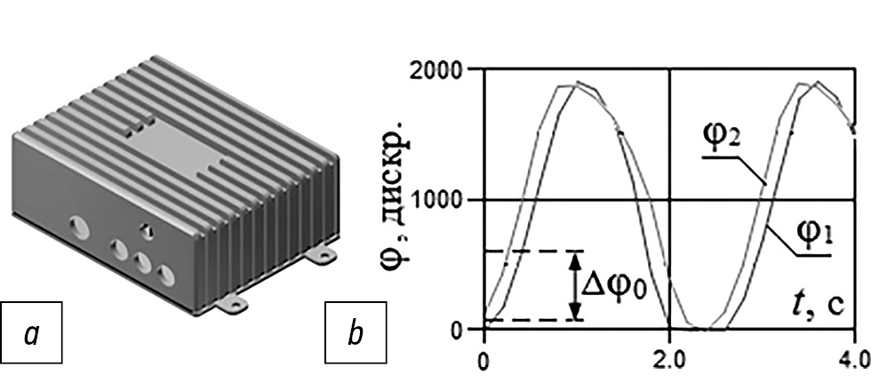 Рис. 5. Система управления электропривода: a – защитный корпус; b – графики положений стеклоочистителей при циклическом движении. / Fig. 5. The electric drive control system: a – the protection housing; b – the graphs of windscreen wipers displacement at cyclic movement.