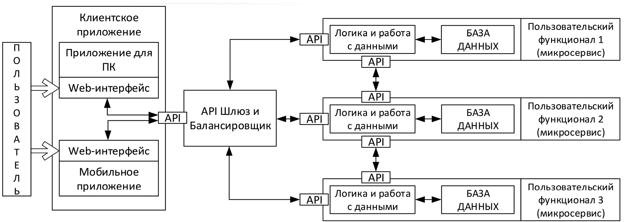 Рис. 3. Обобщенный пример микросервисной архитектуры.