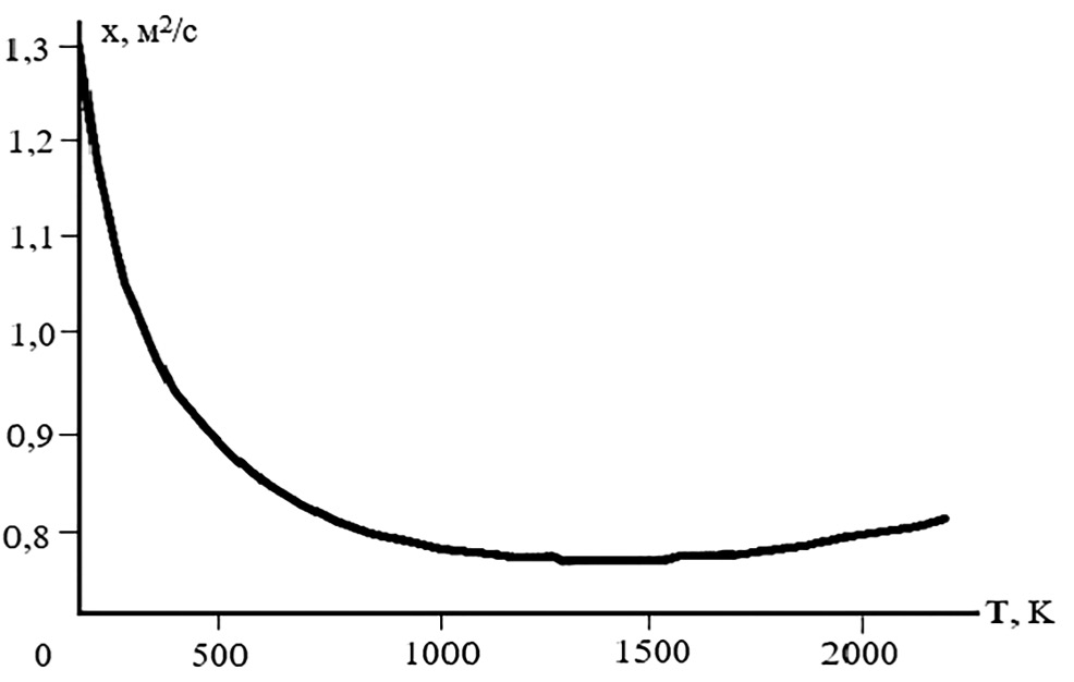 На рис. 1 представлена зависимость коэффициента температуропроводности от температуры
