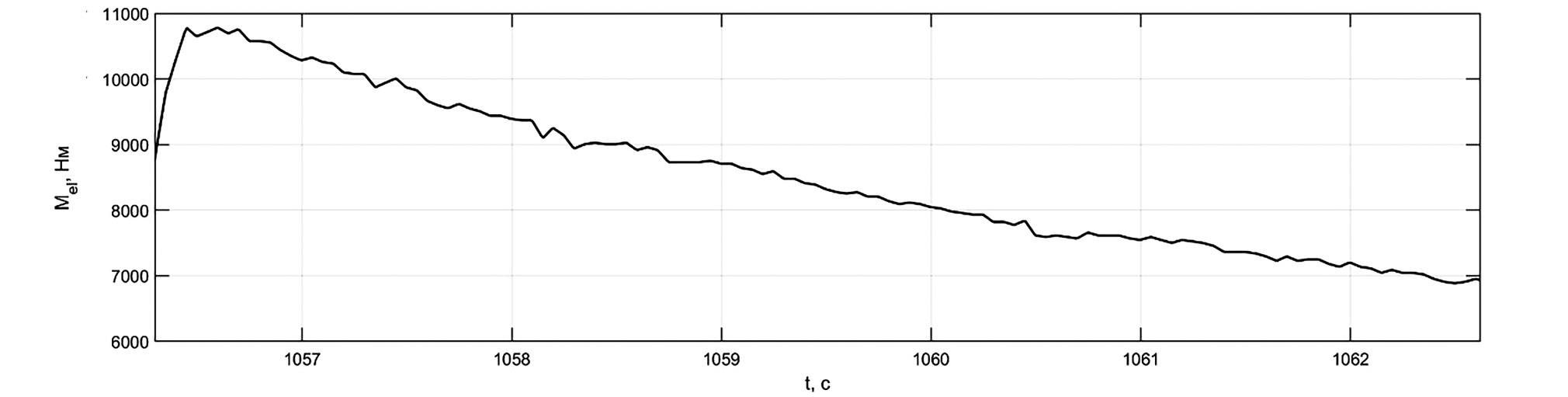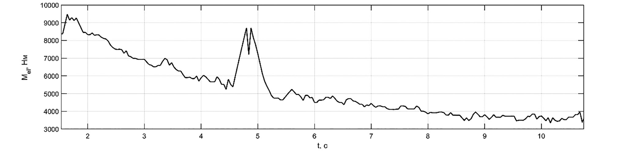 Рис. 5. Характерный фрагмент реализации тягового электрического момента, полученный при испытаниях электробуса.
