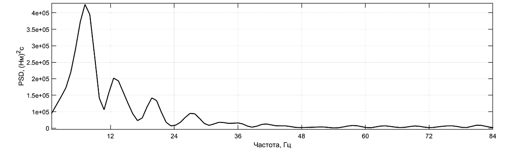 Рис. 7. Спектральная плотность энергии момента тягового электродвигателя для реализации, полученной экспериментально.