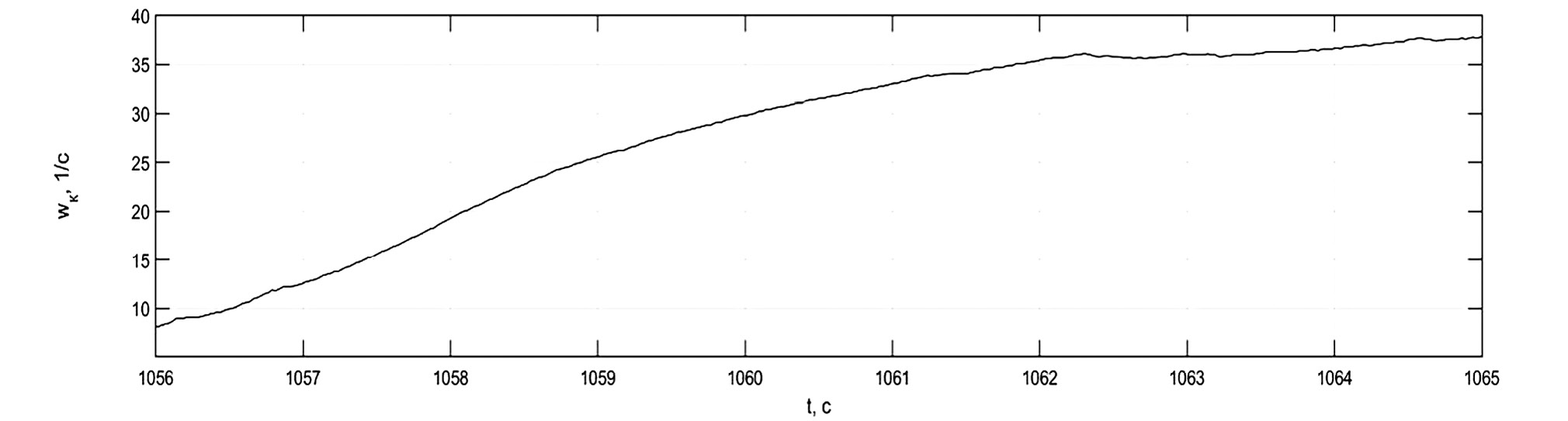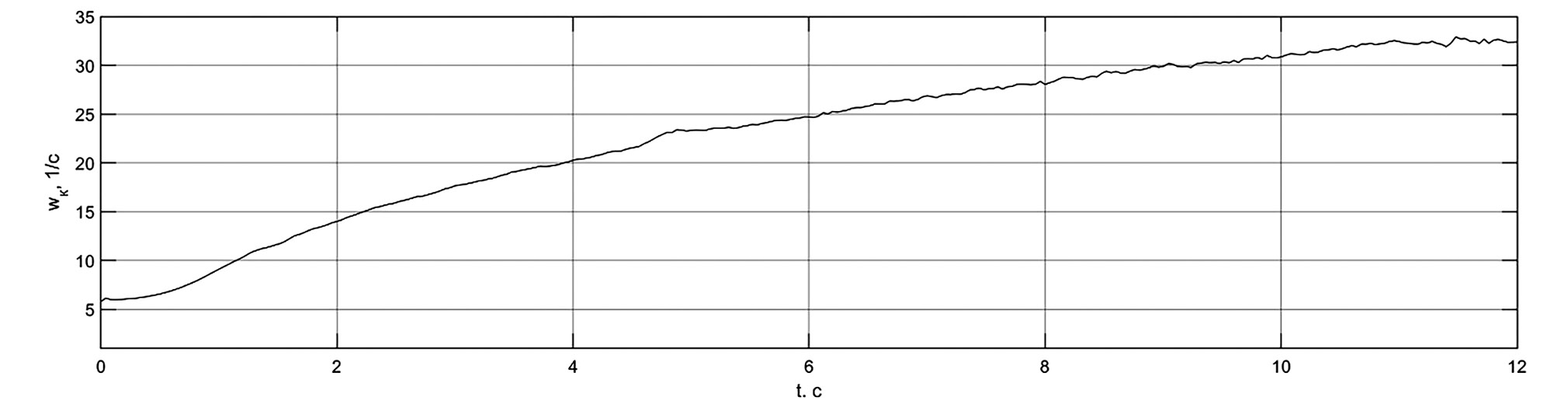 Рис. 9. Характерный фрагмент реализации угловой скорости колеса, полученный в результате моделирования движения электробуса.