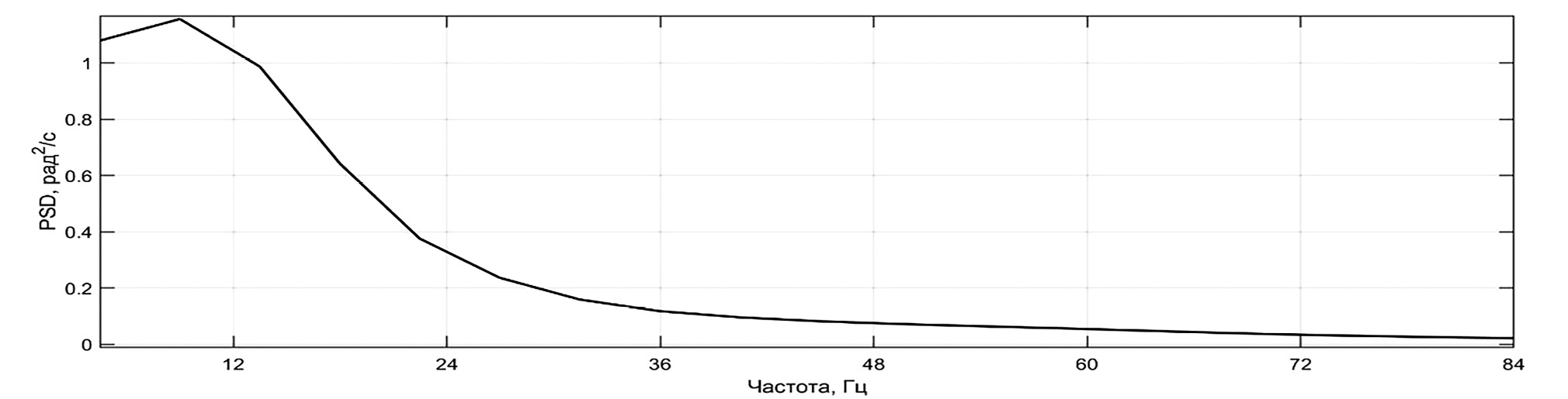Рис. 10. Спектральная плотность энергии угловой скорости колеса для реализации, полученной экспериментально.