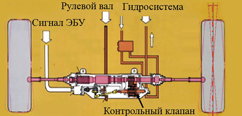 Fig. 7. The Mazda 626’s steering system: ЭБУ — an electronic control unit [13].