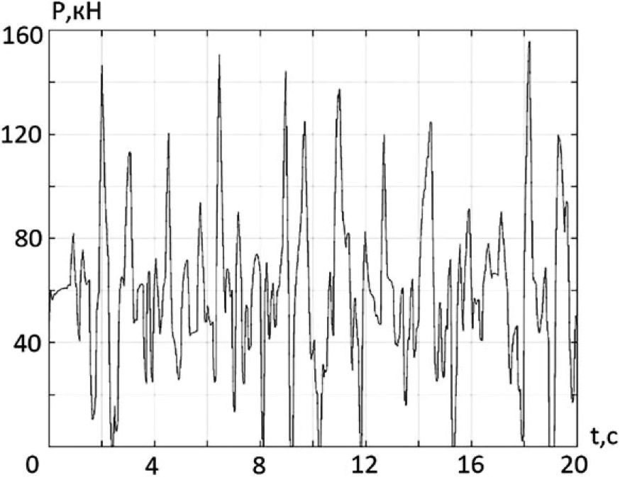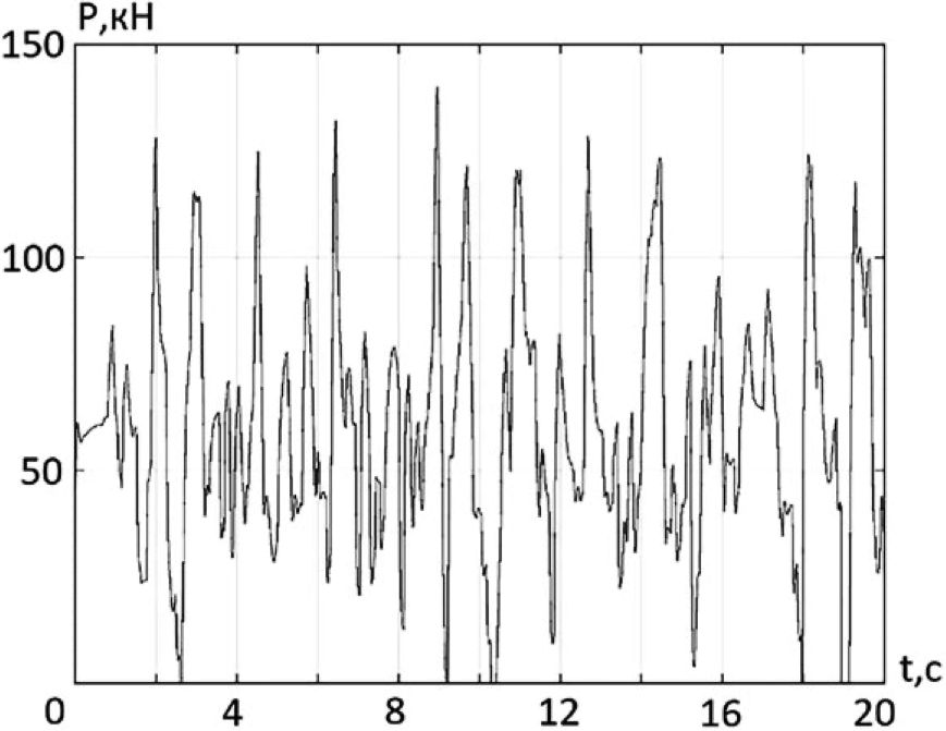 Рис. 19. Сила в шине переднего колеса. Штатная характеристика.